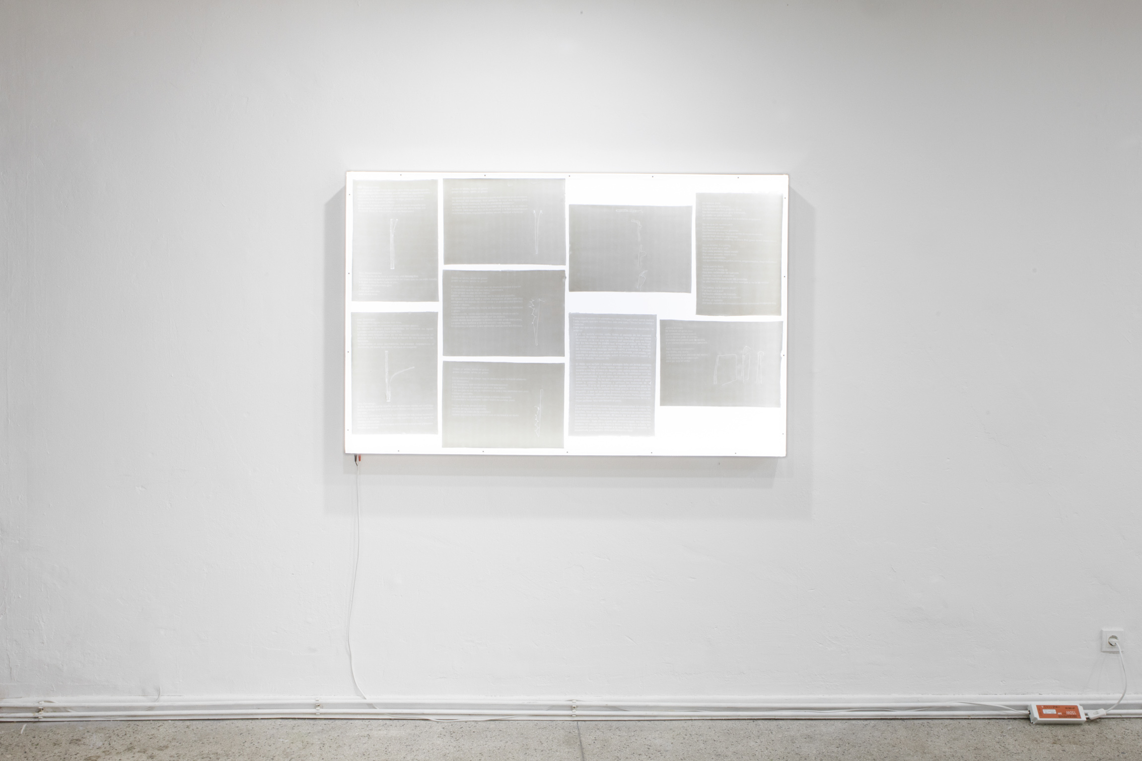 Fugue Gerund, 2023 Drawings and text on carbon paper, aluminium lightbox